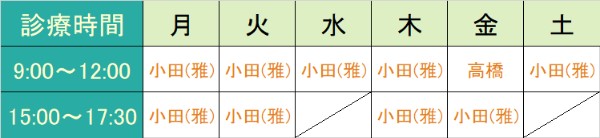 ※月曜日は、第1診察室(髙橋真実)は午前のみ、第2診察室(副院長)は午前午後